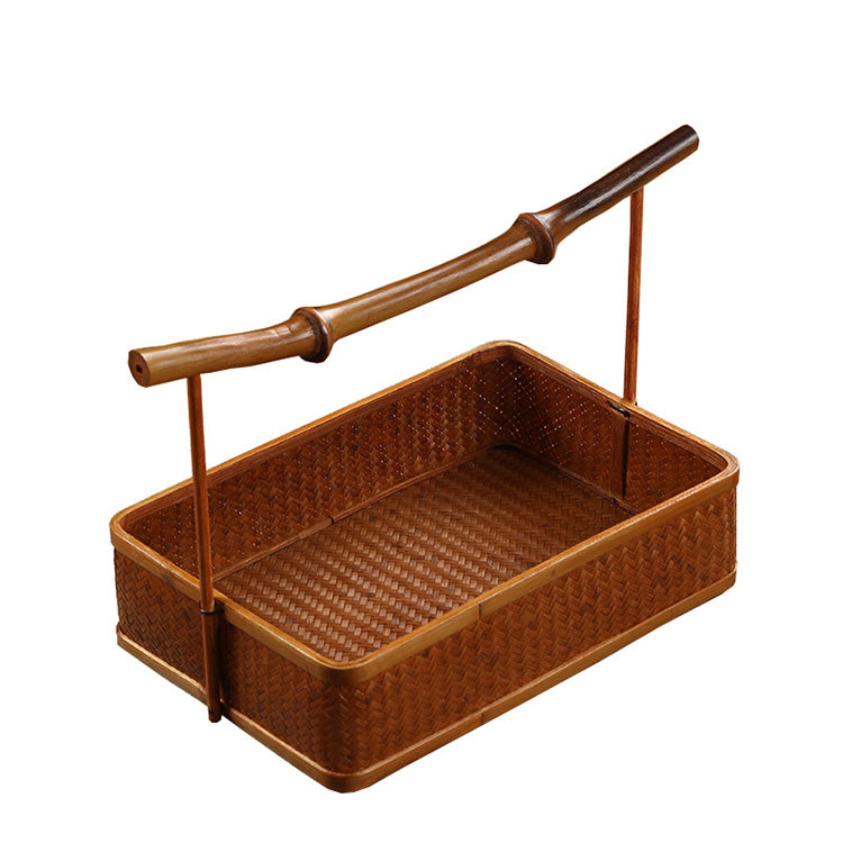 Handcrafted Bamboo Storage Basket for Tea Sets and Fruits